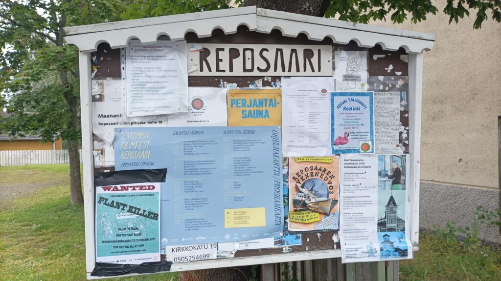 We are staying at the Reposaari Artists’ Association house, editing our film, rehearsing, eating, watching movies (Skönärit!), and finalizing performance plans. The mood is bittersweet—today at 18:00 a big part of the project culminates in the Kivikoulu hall. Thank you for the warm welcome, Sensommar Film Festival and Pori Art Museum.